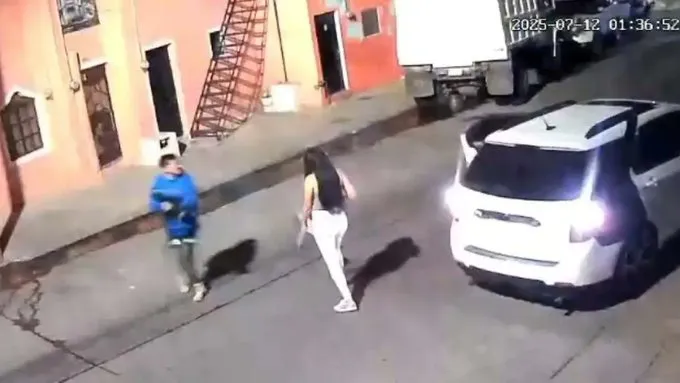Una cámara de seguridad captó el momento en que Kevin “N” discutía con Karla y posteriormente la agredió físicamente.