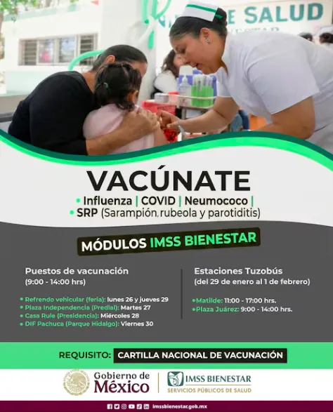 En algunos módulos también se contará con vacunas contra influenza, COVID y neumococo, además de la SRP (sarampión, rubéola y parotiditis).