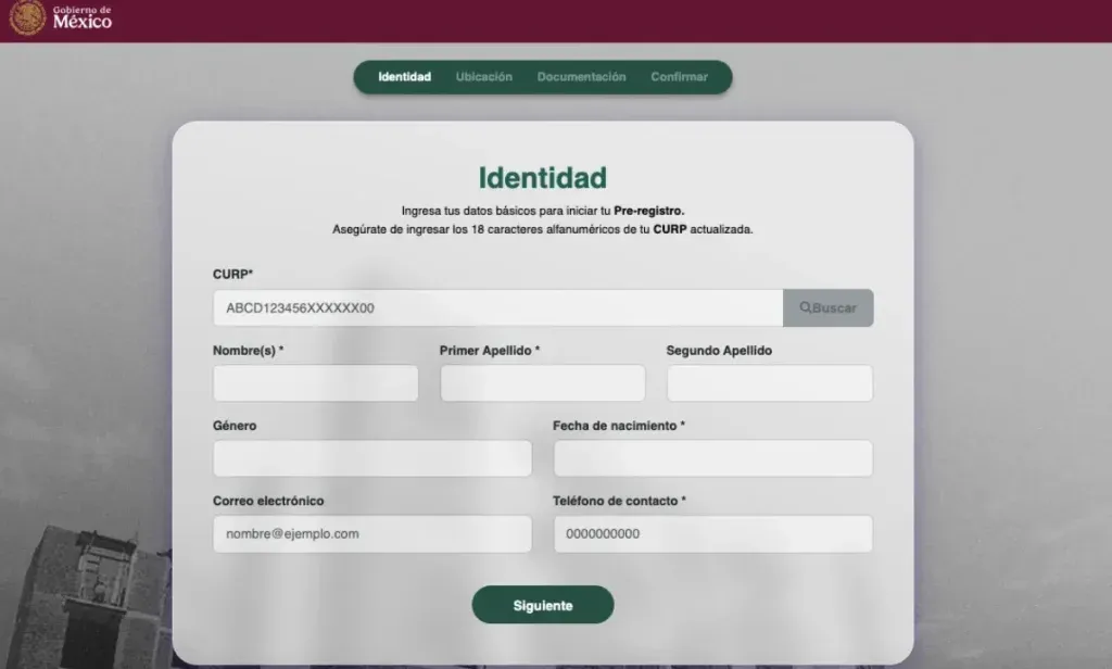 - Validación de Identidad: El primer dato que te solicitará el sistema es tu CURP. Una vez ingresado, el portal validará tu información básica ante el Registro Civil.